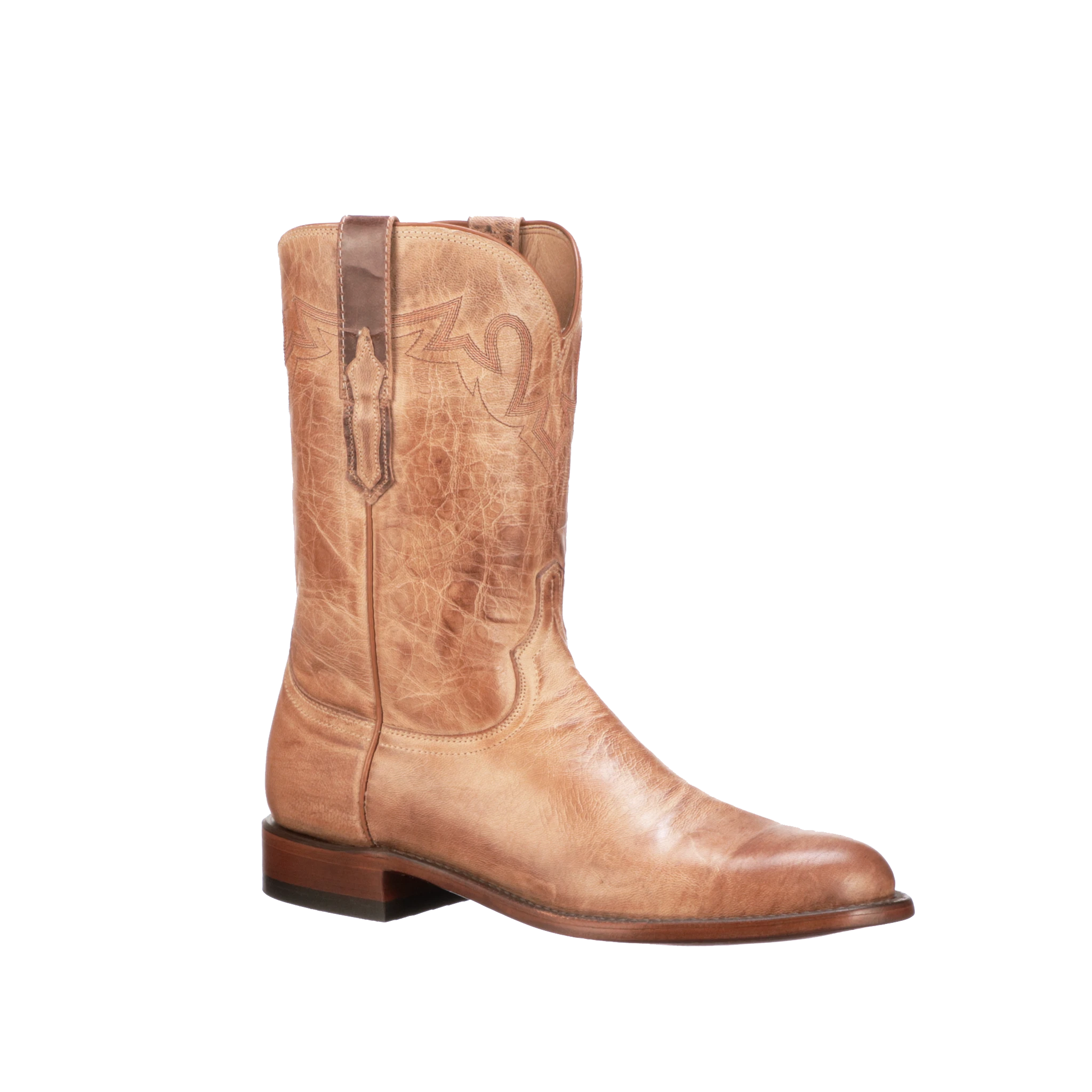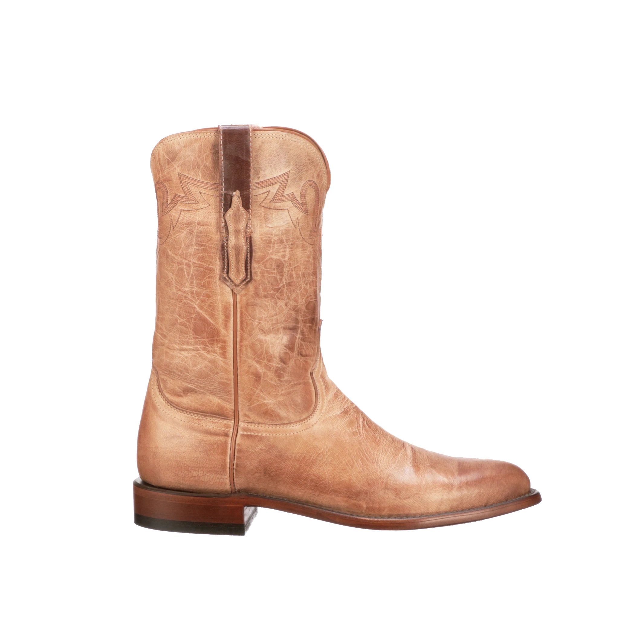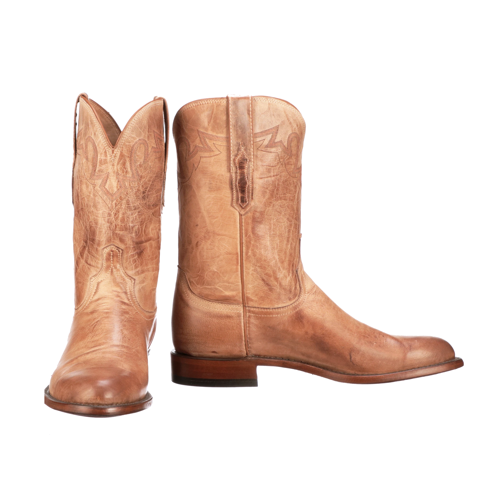 The Sunset Roper is fabricated from bold tones of supple Mad Dog goat leather – a burnished blueprint for the quintessential Texas cowboy. Ready to dismount from any horse, the Sunset Roper allows effortless maneuverability when on the ground. Handmade in Texas.